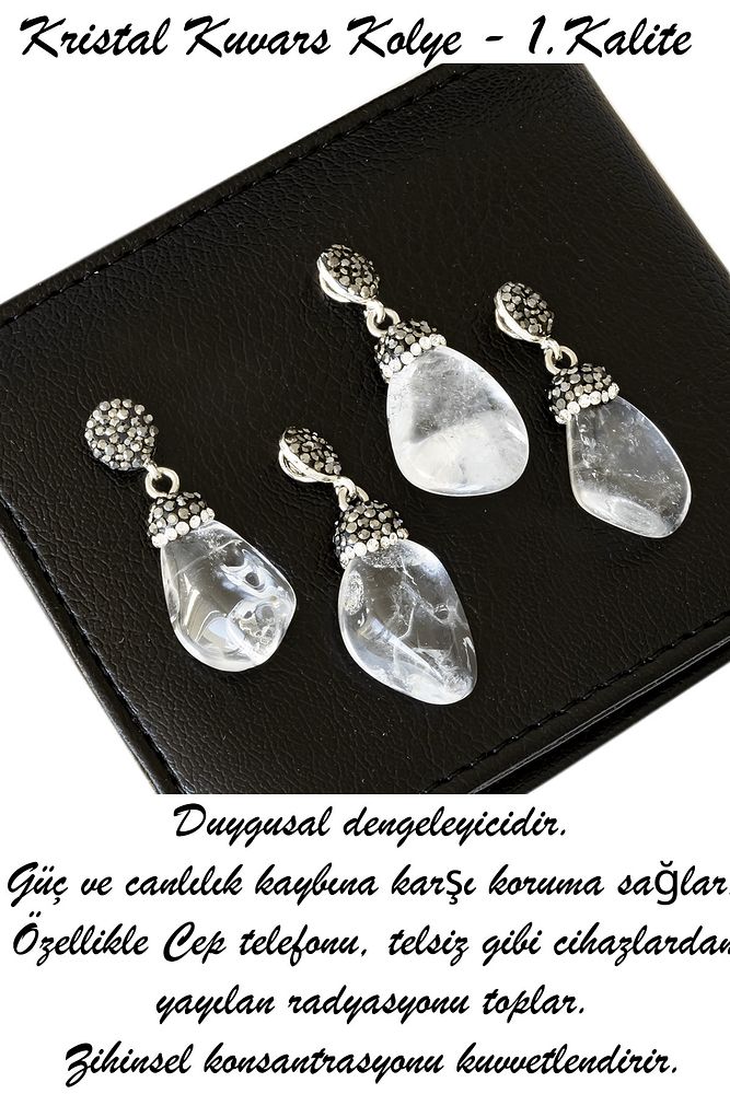 Bu doğal taş kolye tasarımımızda; Kristal kuvars taşı kolye kullanılmıştır. Zincir ölçüsü 45 cm'dir. Her için uyumludur. Yetişkin ve çocuk için kullanılabilir. %100 Orijinal ve gerçek taştır. inizi stresinizi alacak, mineral açısından oldukça zengin olduğu için bulunduğu için teniniz ile temas eder etmez aradaki farkı kısa bir süre içinde hissedeceksiniz.