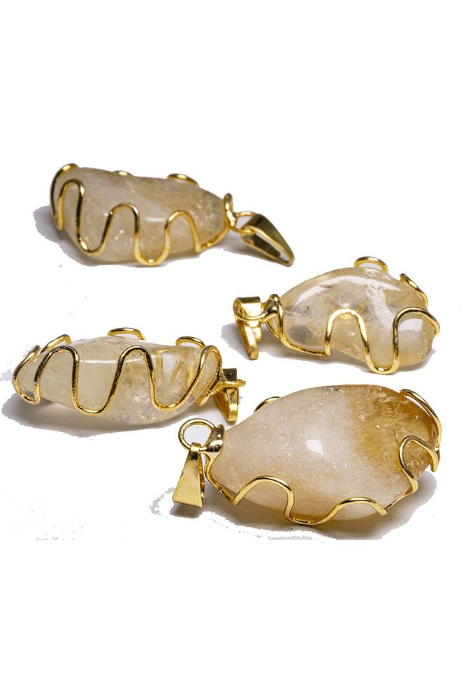 Sertifikalı 24k Altın Kaplama Doğal Sitrin Taşı Kolye