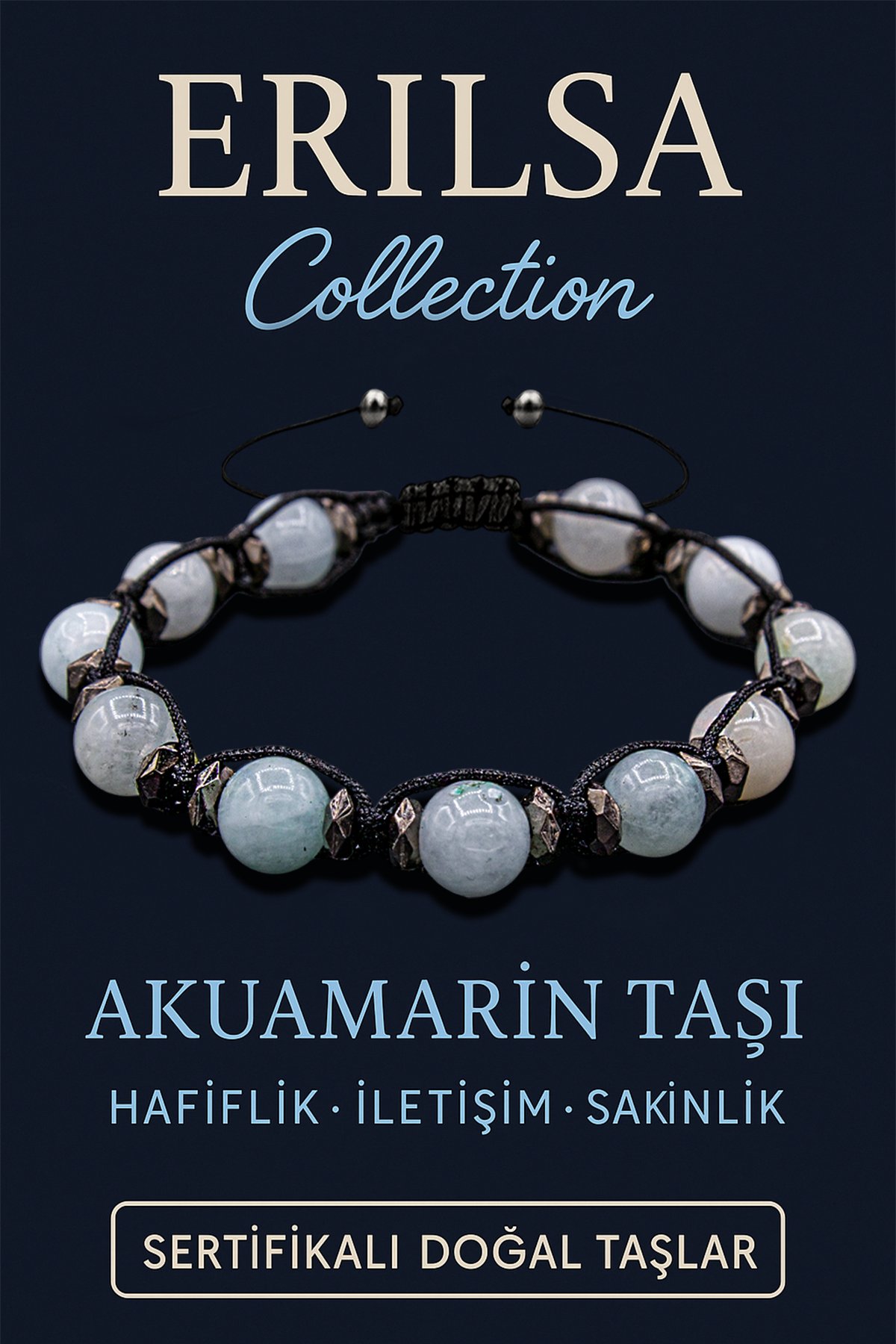Akuamarin, stresin ve kaygının azalmasına yardımcı olurken; Terahertz zihinsel yorgunlukları gidererek enerjiyi dengeler. 8 mm taş boyutu sayesinde bilekte yoğun ve dengeli bir enerji akışı hissedilir. Bu bileklik, ruhsal dalgalanmaları yumuşatır ve bedensel rahatlamayı destekler.