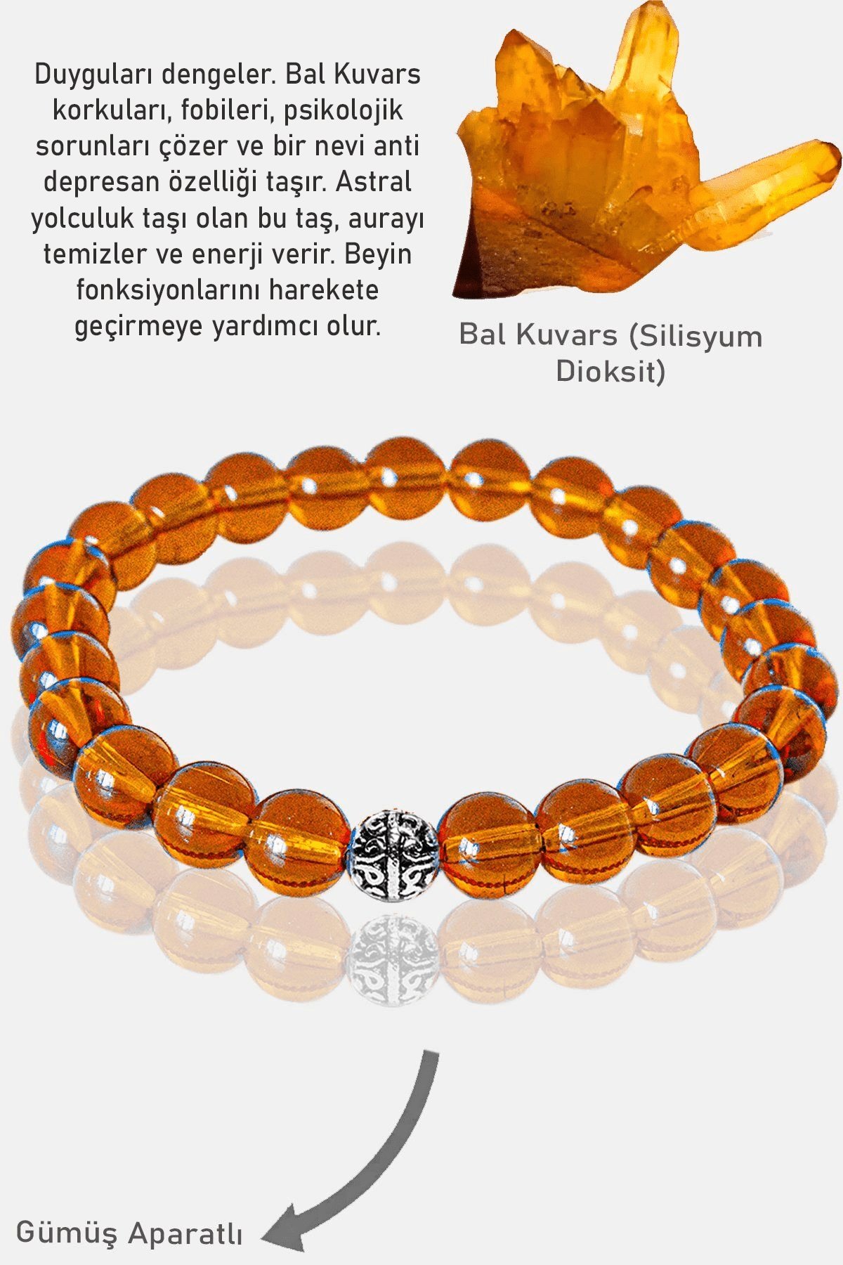 Sertifikalı AAA+ Bal Kuvars Taşı Bileklik - Gümüş Aparatlı