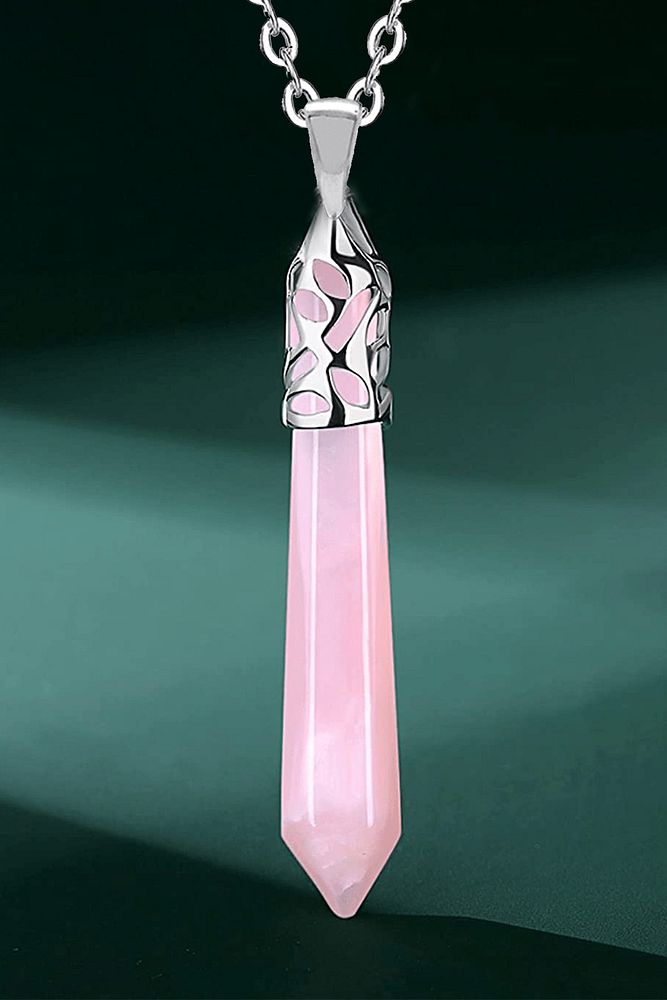 Sertifikalı Aaa Kalite Doğal Açık Pembe Kuvars Taşı Kolye