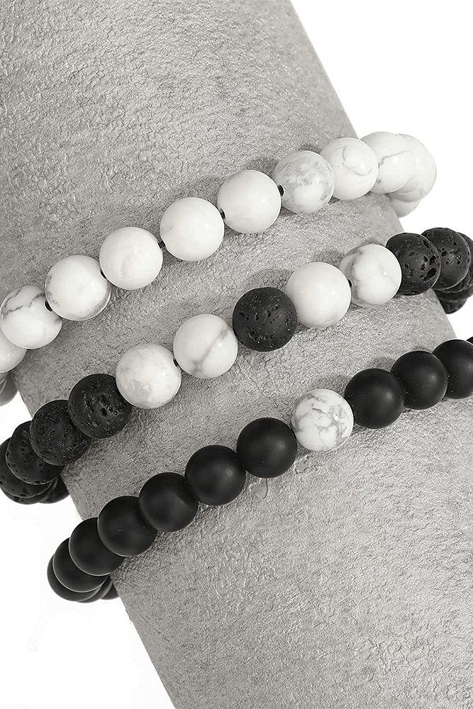 Sertifikalı Aaa Kalite Gerçek Havlit Oniks Lav Taşı Üçlü Bileklik Seti