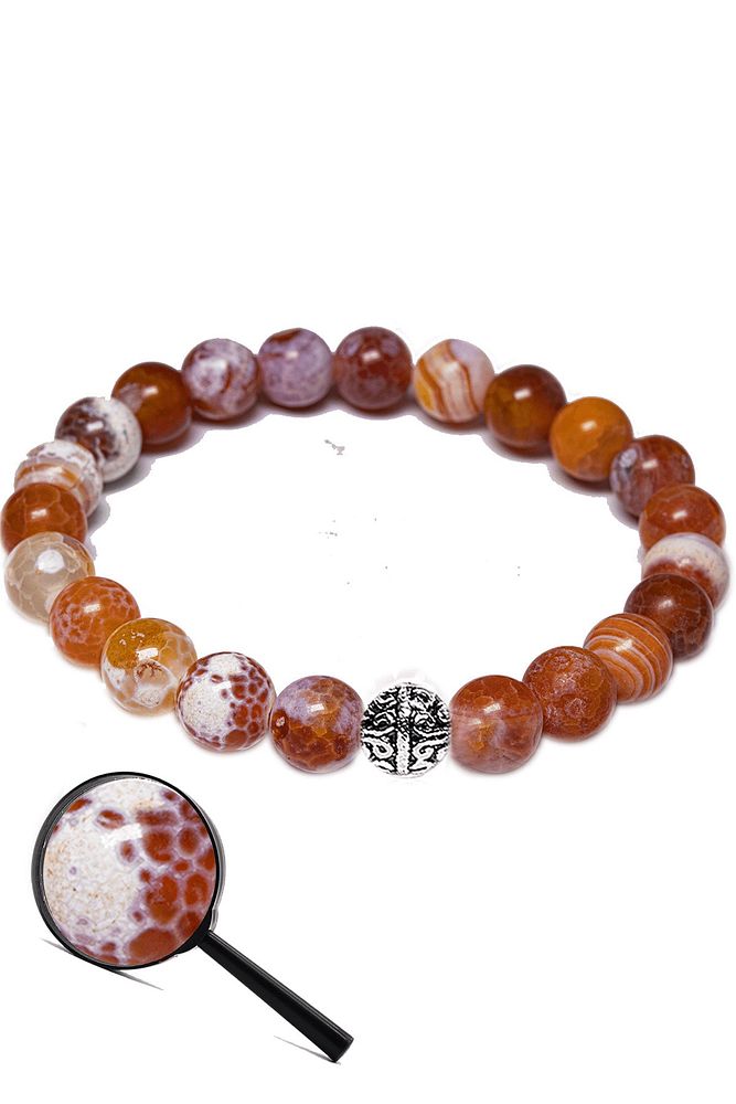Sertifikalı Aaa Kırmızı Beyaz Tibet Akik Taşı Bileklik (gümüş Aparat)