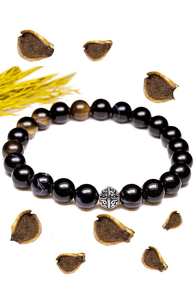 Sertifikalı Aaa+ Siyah Akik Taşı Bileklik - Gümüş Aparatlı