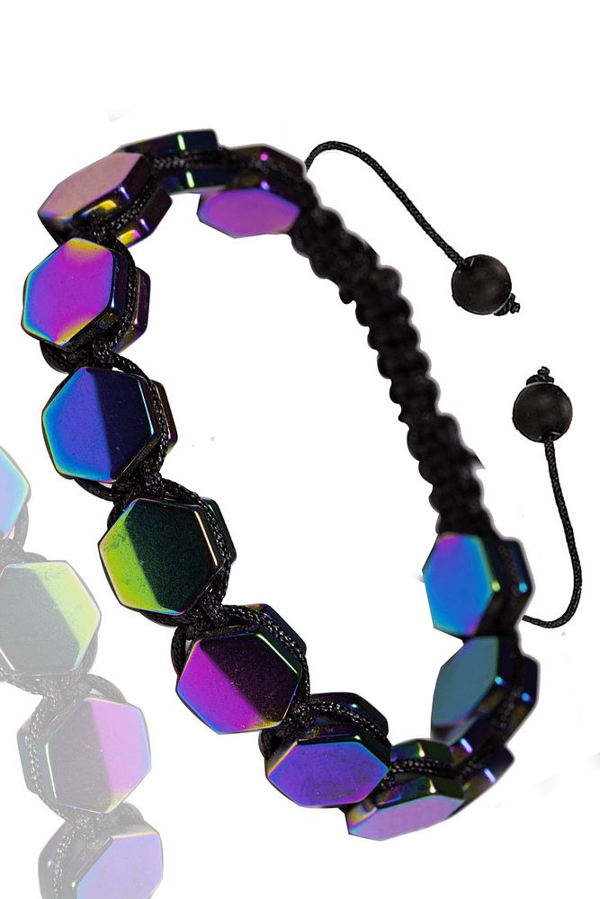 Sertifikalı Altıgen Aura Hematit Taşı Bileklik - Makrome