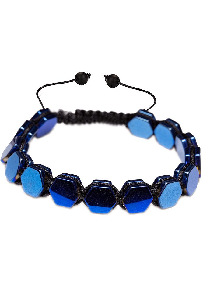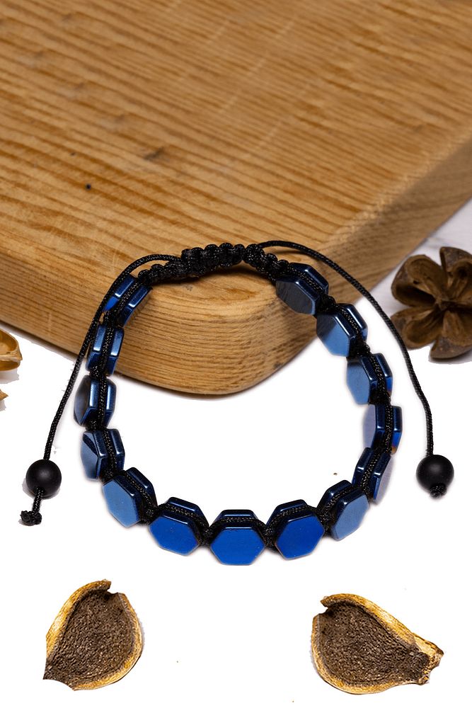 Sertifikalı Altıgen Mavi Hematit Taşı Bileklik - Makrome