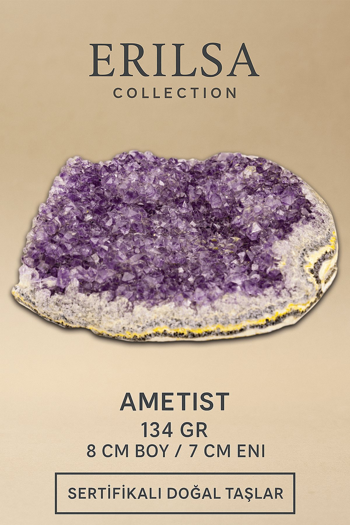 Ürün 134 gram ağırlığındadır, %100 doğal, katkısız ve ham Ametist taşıdır. Tek parça olarak kutulu şekilde sunulur ve sertifikalıdır.