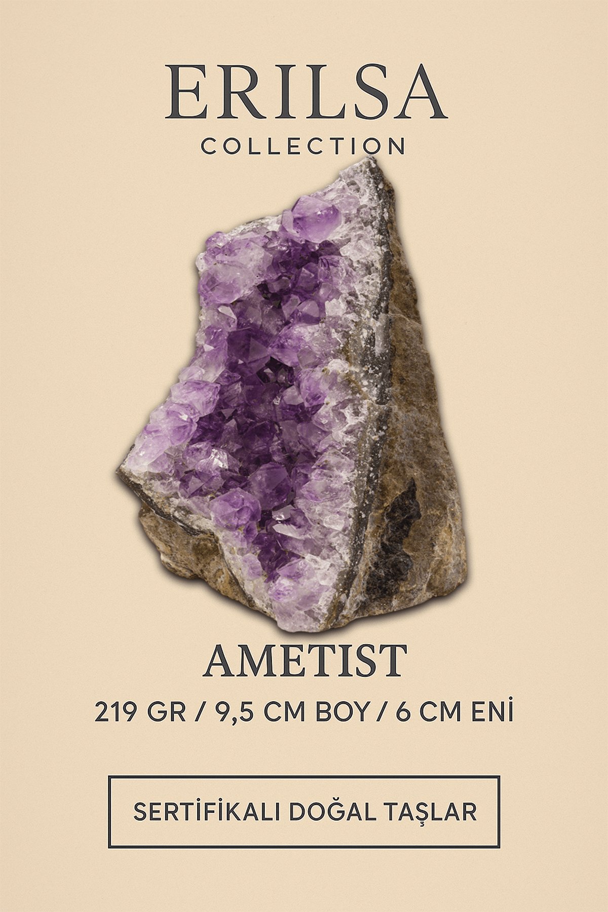 Balık, Kova, Yay ve Başak burçlarıyla yüksek uyum gösteren ametist, hem bireysel kullanım hem de yaşam alanlarını enerjilendirmek amacıyla tercih edilir. Doğal yapısı bozulmadan sunulan bu taş, aynı zamanda koleksiyonluk bir parçadır.