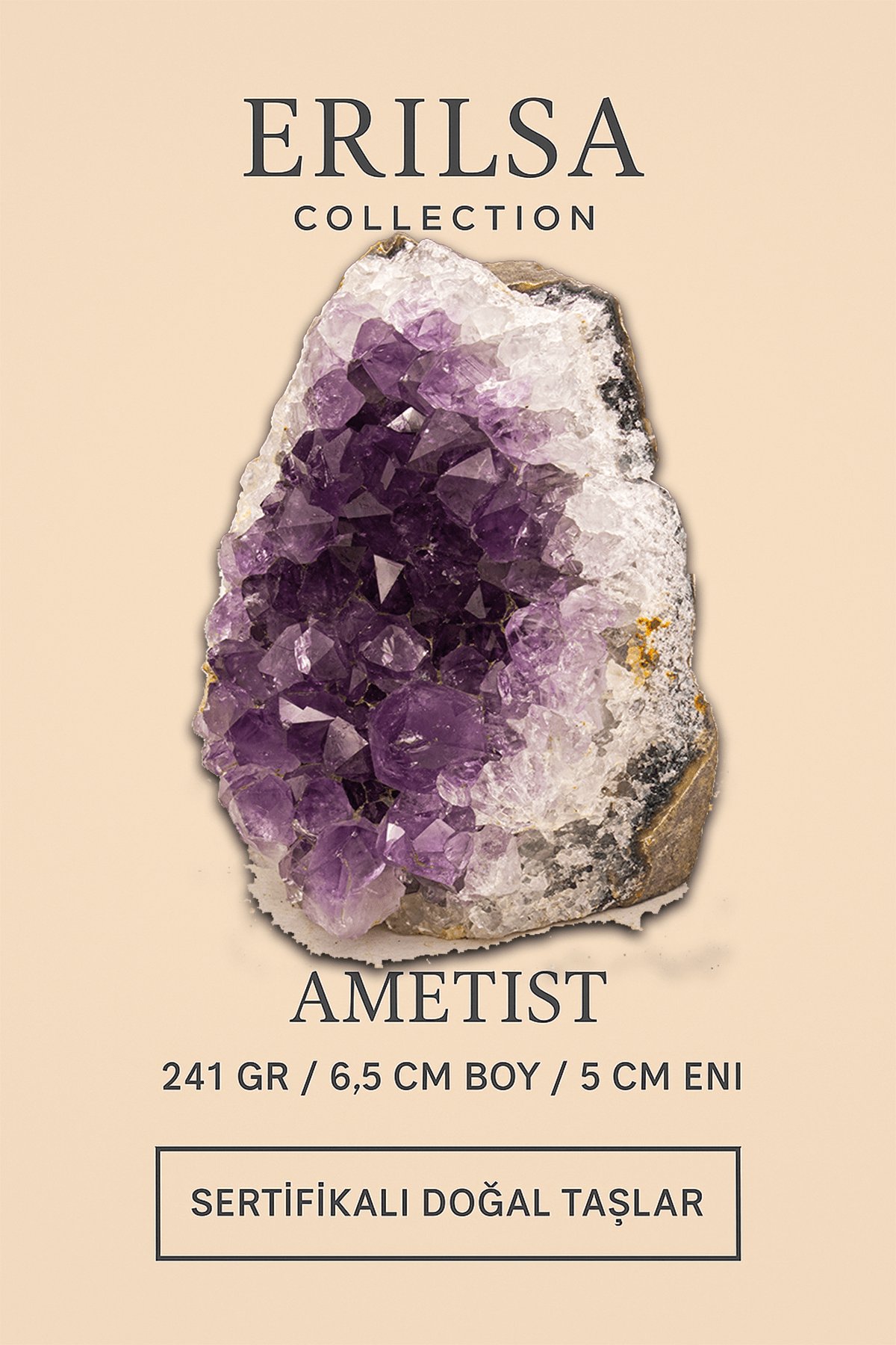 Doğal formu korunmuş bu taş, sertifikalı olarak sunulmakta ve her biri kendine özgü kristal yapısıyla benzersizdir.