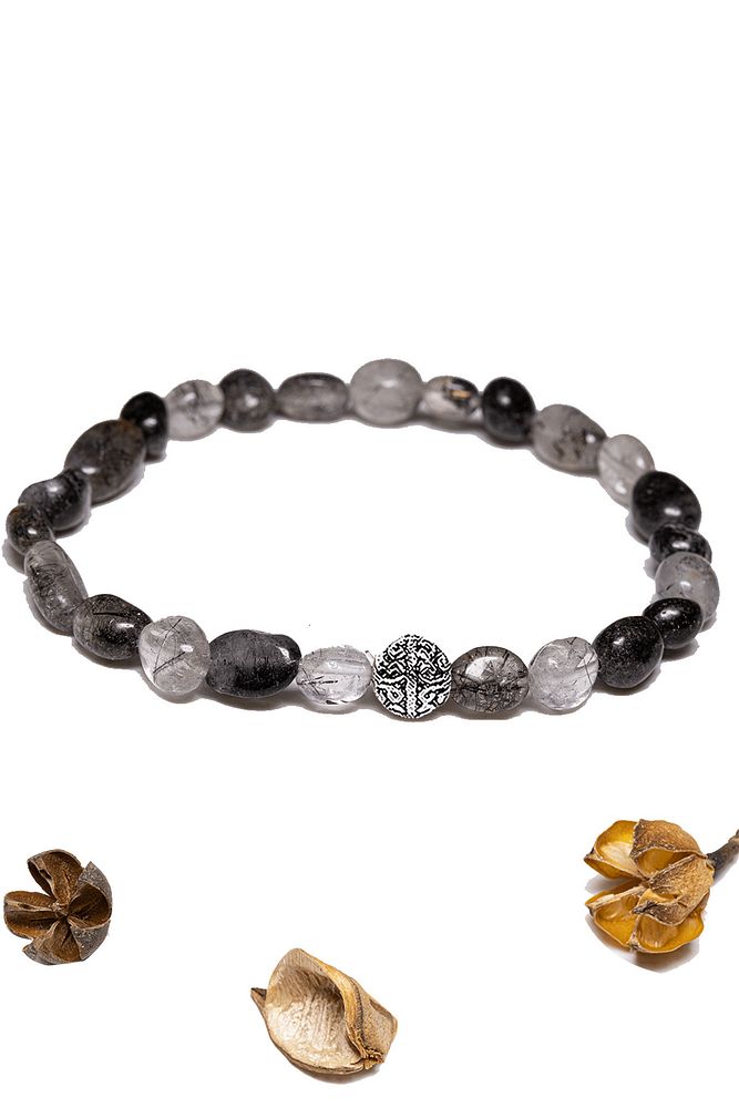 Sertifikalı Amorf Kesim Siyah Rutil Kuvars Taşı Bileklik - Gümüş Aparatlı