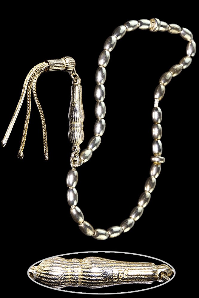 Sertifikalı Arpa Kesim 925 Ayar Gümüş Tesbih