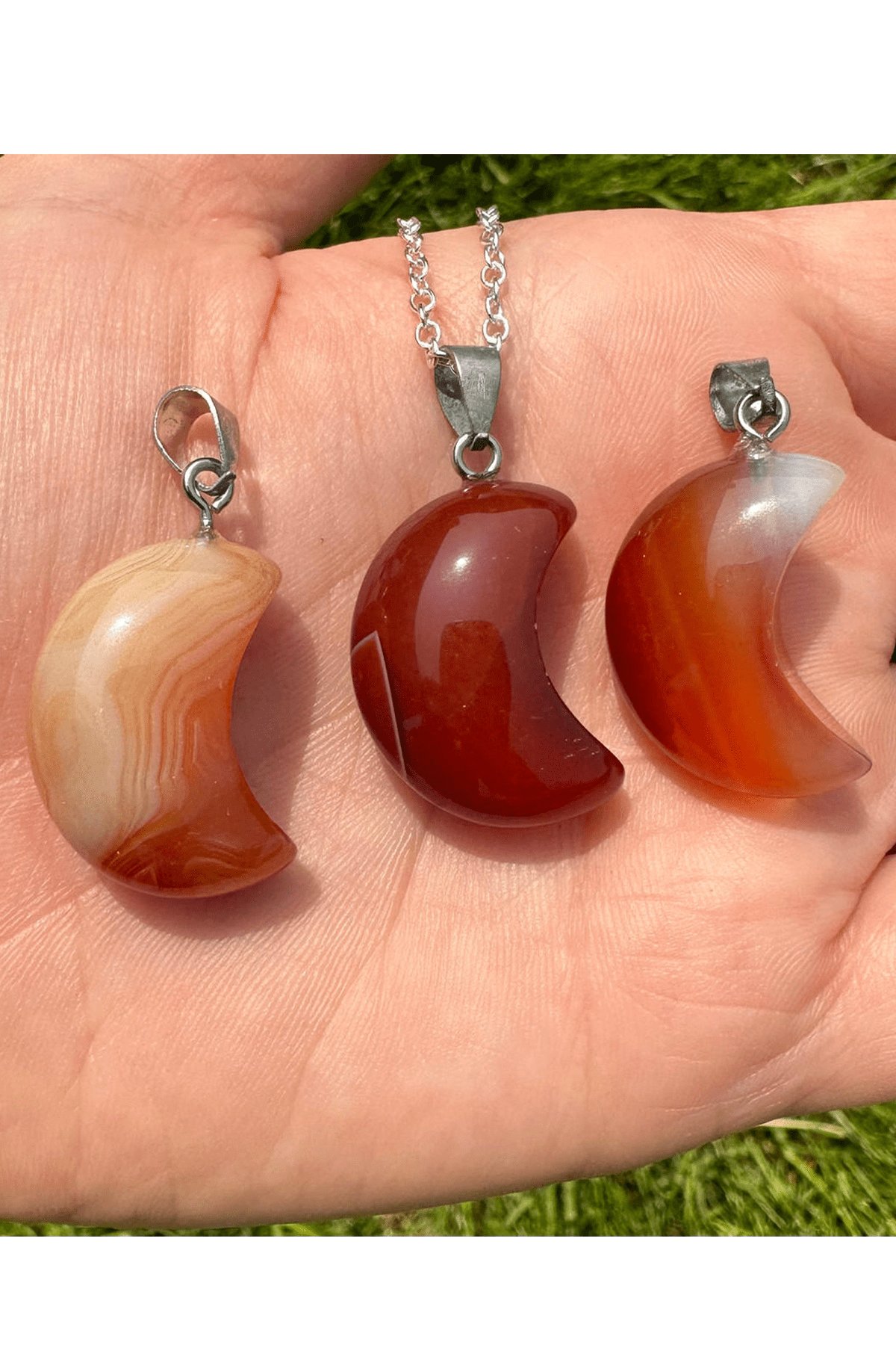Sertifikalı Ay Model Gerçek Karnelyan Akik Taşı Kolye