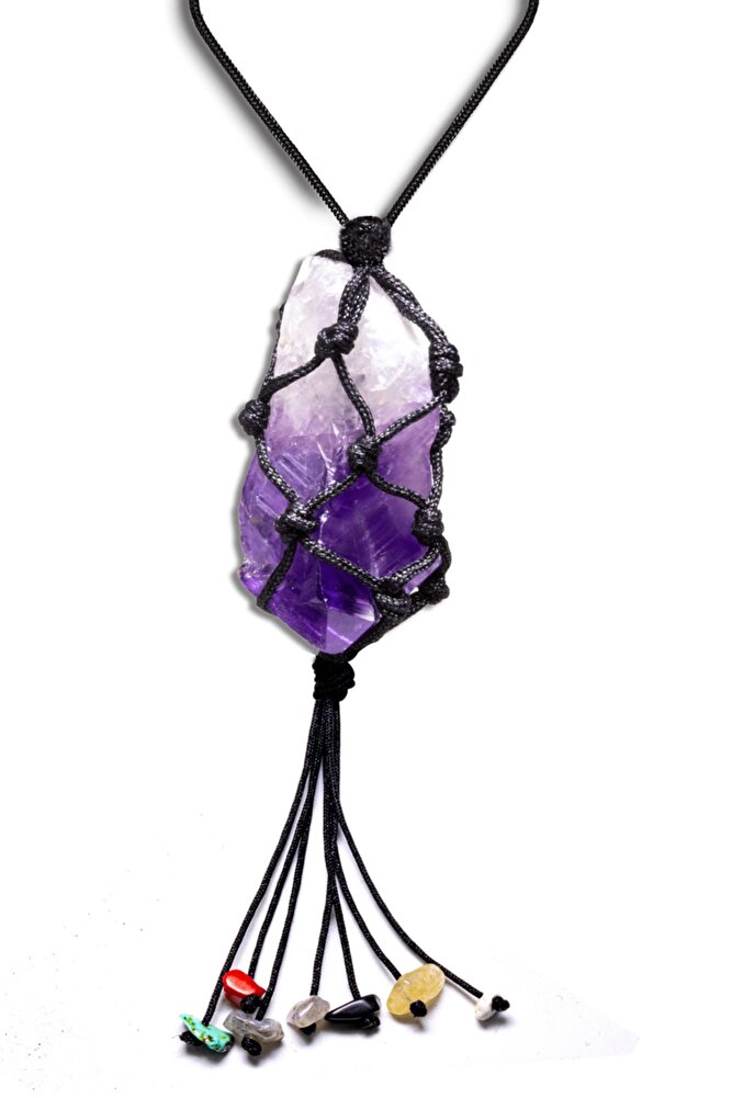 Sertifikalı Ayarlanabilir Ham Işlenmemiş Doğal Ametist Taşı 7 Çakra Kolye