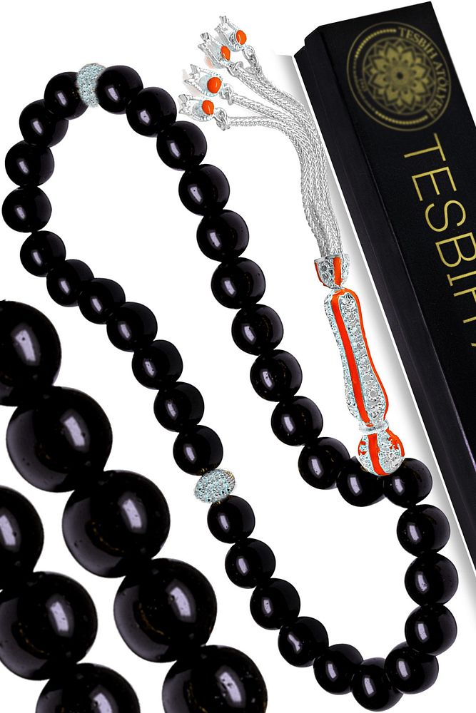 (Para, Bereket ve Pozitif Enerji Taşı) Oniks tesbih modelleri, ''Tesbih Atölyesi'' Atölyelerinde ustalarımız tarafından kuru torna işciliği ile elde özen ile tane tane işlenmektedir. Ürünlerimiz el işciliği olduğu için sınırlı sayıda üretilmektedir. Tasarımlarımızda kullandığımız taşlar Dünya'nın en kaliteli oniks taşlarını kullanmaktayız. Vücudunuza temas ettiği anda negatif enerjilerinizi alır ve pozitif enerjiler verir. Yedek ipi gönderilir ve ürünlerimiz ''Tesbih Atölyesi'' koruyucu ağaç kutusu ile gönderilmektedir. Bu tasarımda; Parlak Oniks taşı ve altın kaplama püsküllü kararmaz imame ve püskül seti kullanılmıştır. Çift kaplama atıldığı için renk atmaz ve kararmaz bir yapıya sahiptir. Üretildiği Taş : Oniks Taşı Ana Renk : Doğal Renk Ağırlık : 20-30 gr Tane Şekli : 8x8 mm Tane Ölçüsü : Küre Kesim Toplam Uzunluk : 20-30cm İmame ve Püskül Maddesi : Düşük Ayar Gümüş Alaşımlı