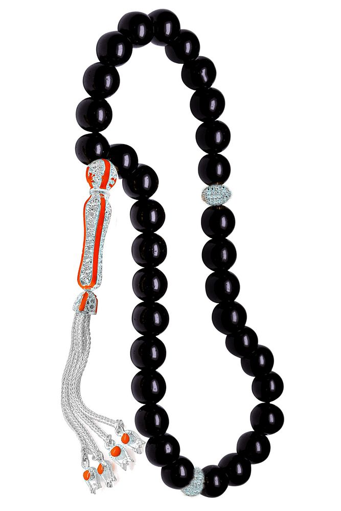 Sertifikalı Bakır Renk Telkari Püskül Doğal Oniks Taşı Tesbih