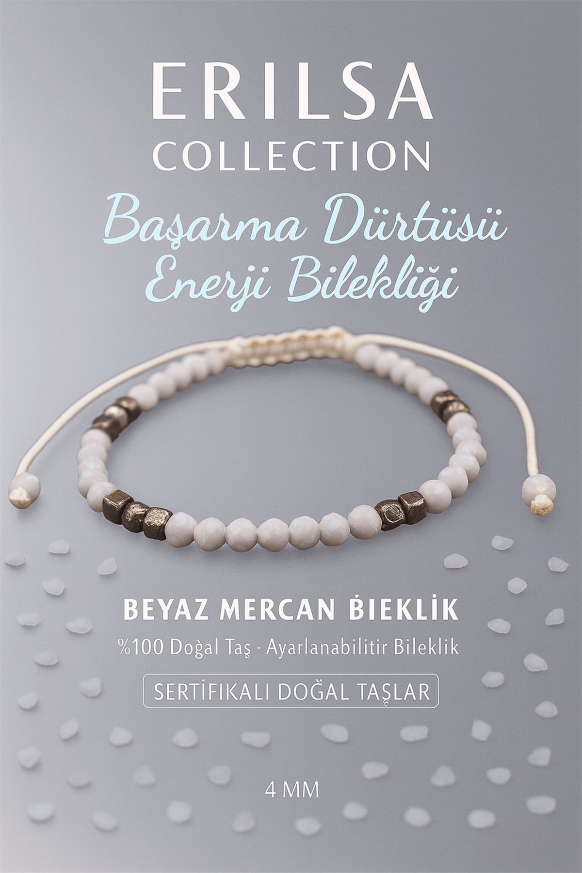 Sertifikalı Başarma Dürtüsü Enerji Bilekliği – Beyaz Mercan ve Terahertz Doğal Taş 4 mm
