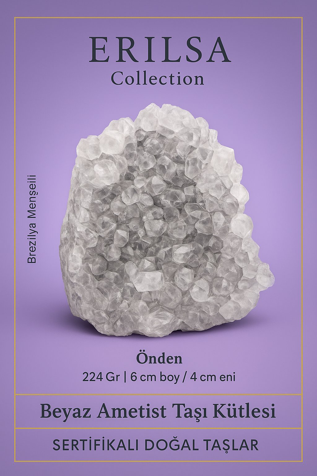 Tamamen doğal, ham ve işlenmemiş olan bu taş, Brezilya menşeili olup Erilsa Collection güvencesiyle sertifikalı olarak sunulmaktadır. Masa üstü, raf ya da kişisel köşenizde şıklık ve anlam arayanlar için eşsiz bir seçimdir.
