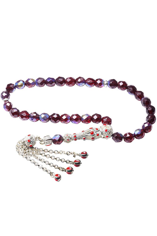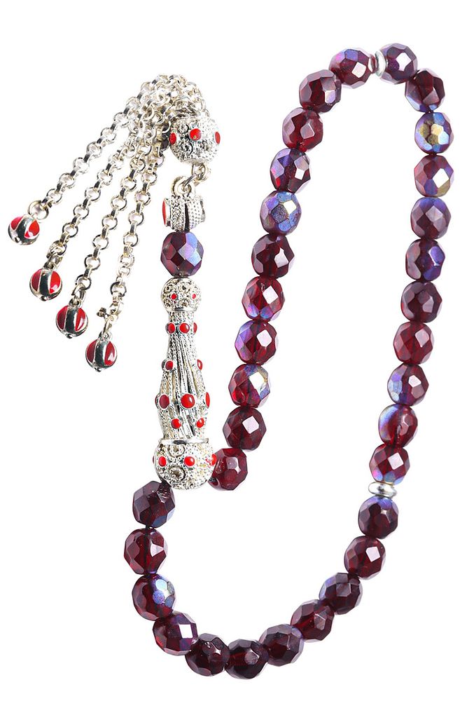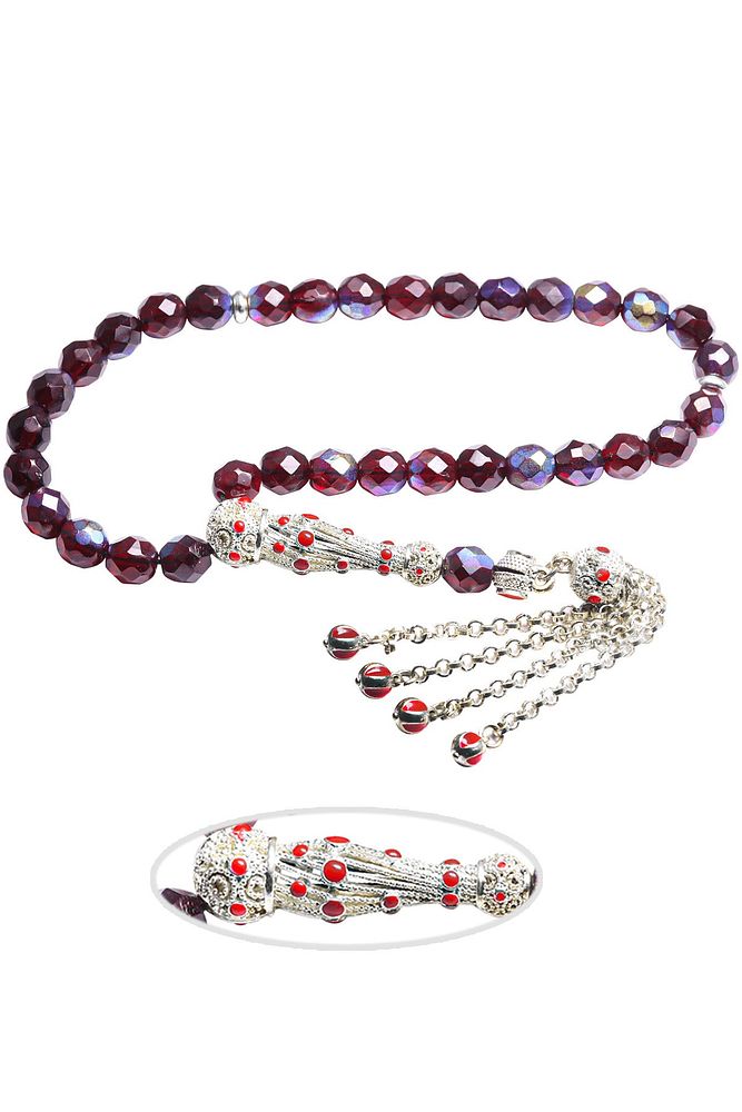 Sertifikalı Beyaz Mineli Telkari Püsküllü Bordo Kuvars Taşı Tesbih
