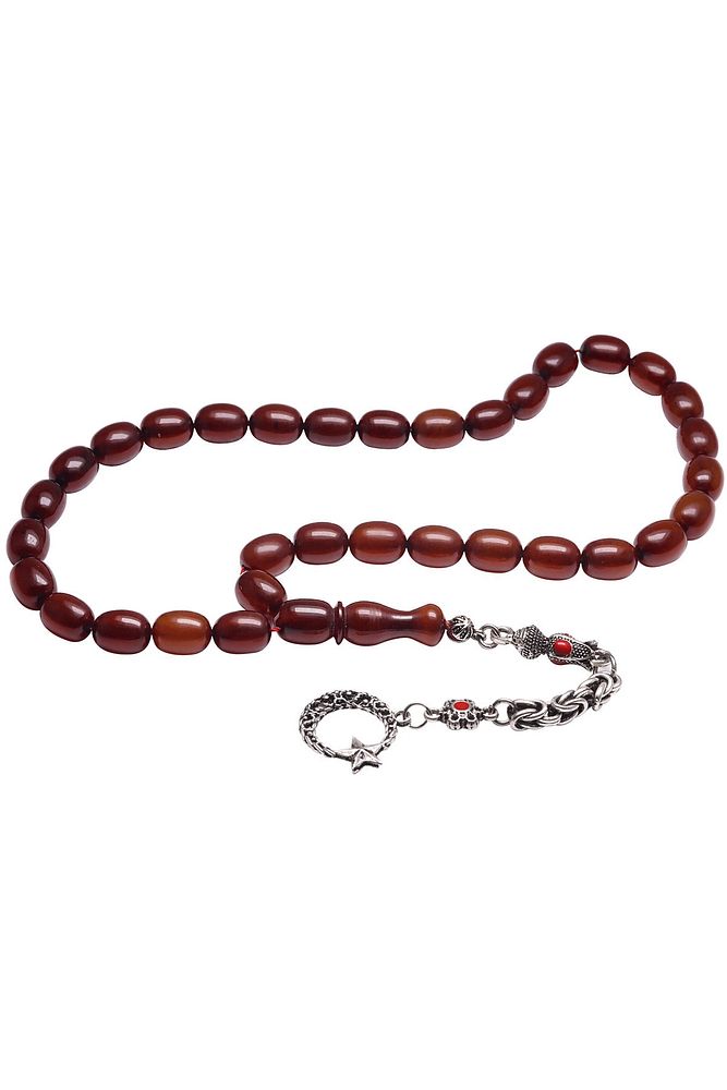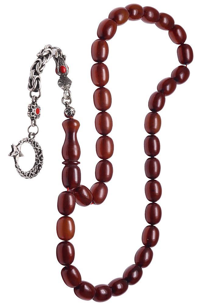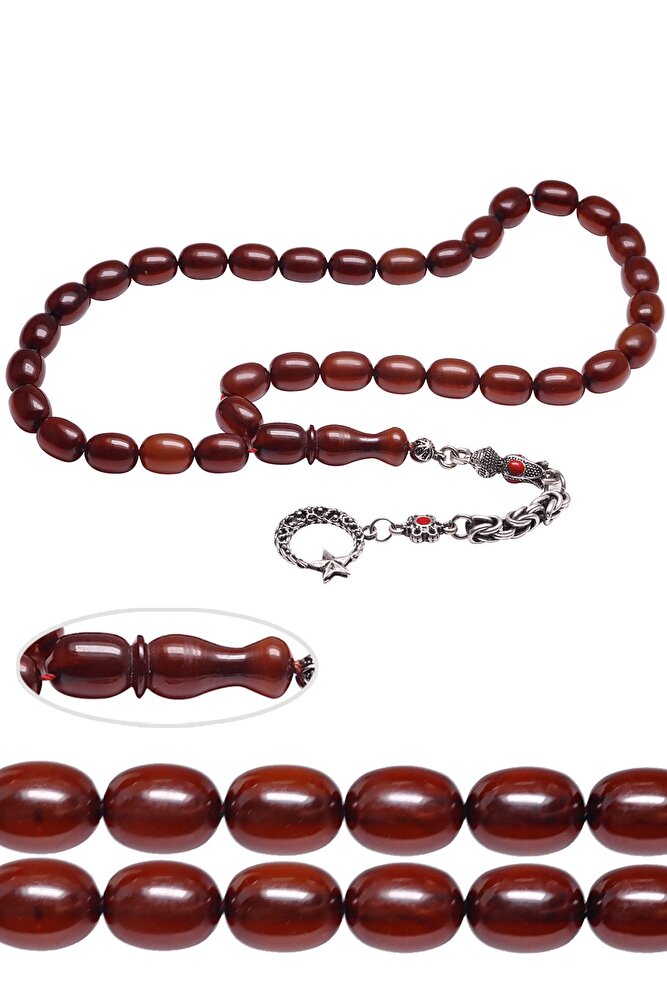 (Baş Ağrısı Sinir ve Stres) Tesbih Atölyesi, Sıkma kehribar tesbih, tasarımları özel olarak usta ellerde tasarlanır. Tasarımlarımız el yapımı olup sınırlı adette üretilmektedir. Tasarımlarda kullanılan püsküller düşük ayar gümüşten imal edilir. Tasarımlarda kullanılan kehribar taneleri hareli özel kalıplardan yapılır. Yapay reçine ile üretilmektedir. Ürünlerimiz renk almakta ve koku vermektedirler. Bu tasarımda; Tombul bordo renkli renk alan kaliteli çubuk sıkma kehribar reçine kullanılmıştır. Her kehribar tanesi birbirinin aynısı olmadığı için küçükte olsa farklılıklar gösterebilir. Üretildiği Malzeme; Sıkma Kehribar; Ana REnk; Bordo Renk; Ağırlık; 20-30 gr; Tane Şekli; 9x11 mm; Tane Ölçüsü; Kapsül Kesim; Toplam Uzunluk; 20-30 cm; İmame ve Püskül Maddesi; Düşük Ayar Gümüş;