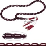 Üretildiği Malzeme Sıkma Kehribar Ana Renk Bordo Ağırlık 20-30 gr Tane Şekli 8.5×1.5 mm Tane Ölçüsü Kapsül Kesim Toplam Uzunluk 20-30 cm İmame ve Püskül Maddesi Makrome