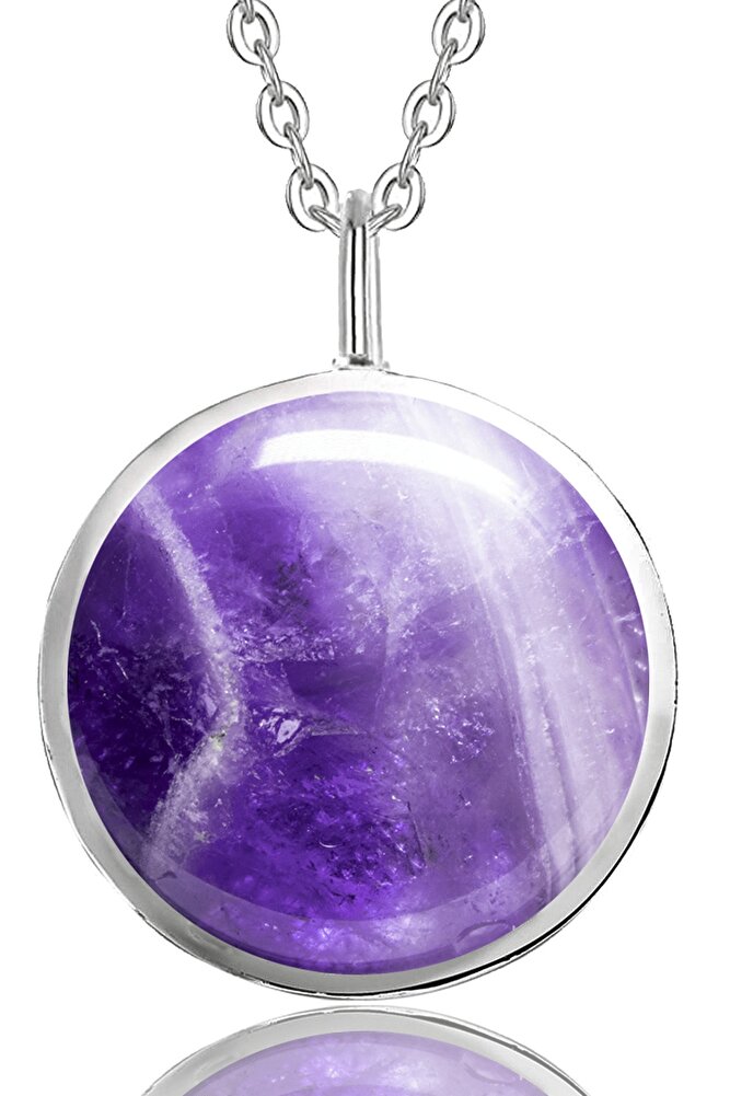 Sertifikalı Çift Taraflı Doğal Ametist Taşı Kolye