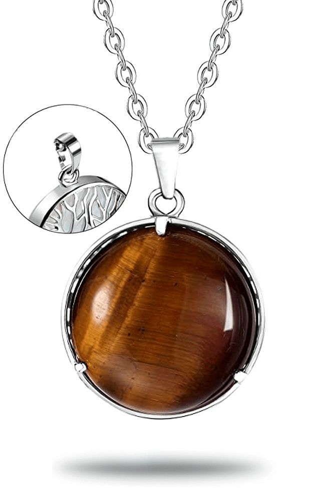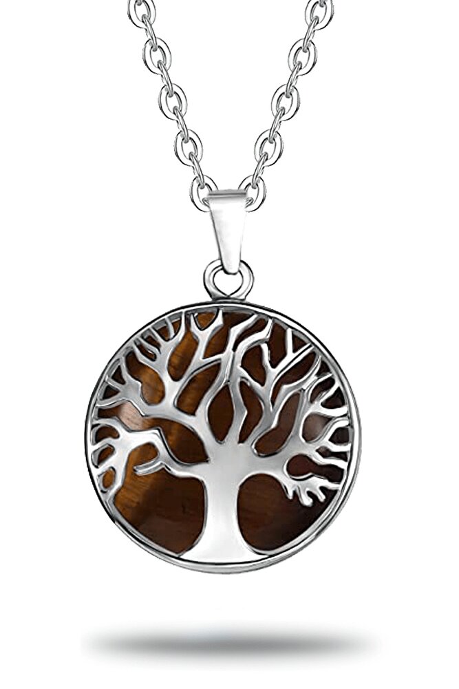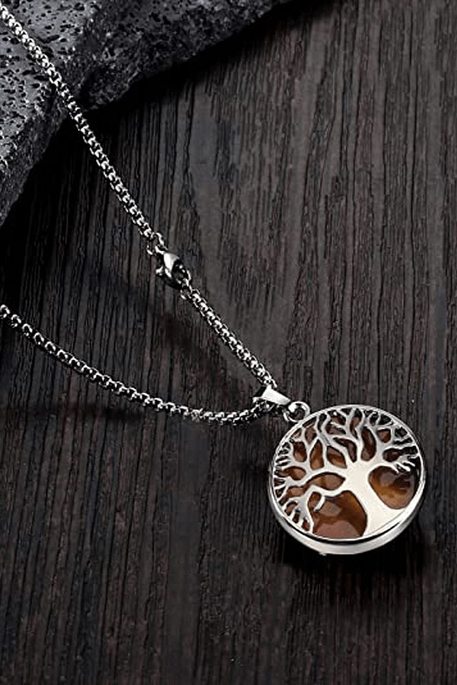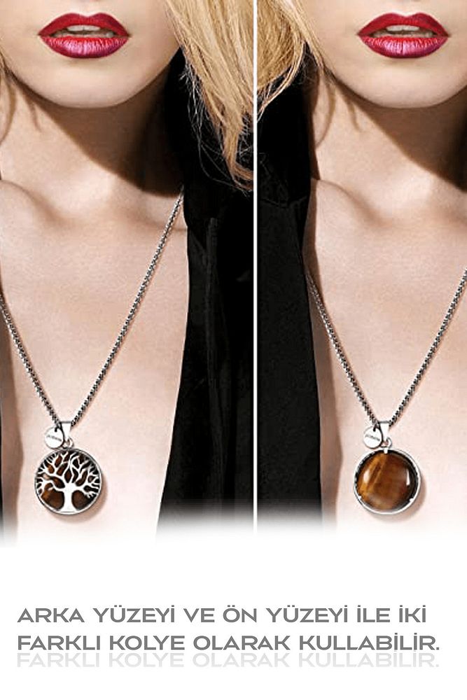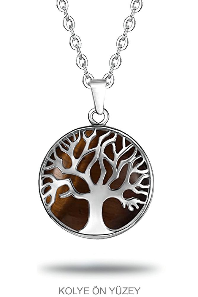 Sertifikalı Çift Taraflı Doğal Taş Kaplan Gözü Taşı Hayat Ağacı Kolye