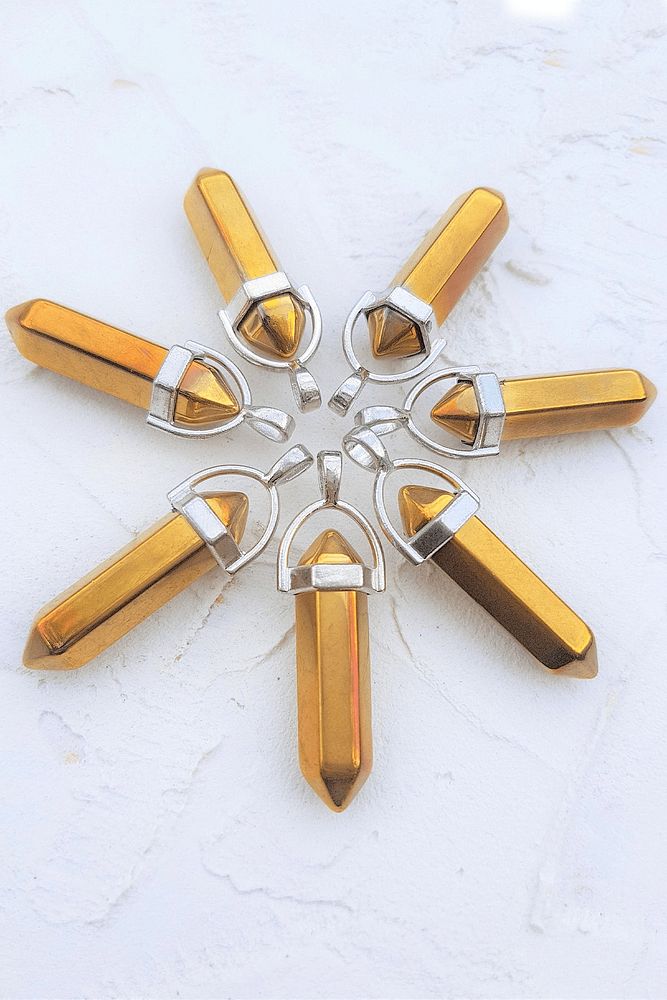 Sertifikalı Çivi Kesim 24k Gold Hematit Taşı Kolye
