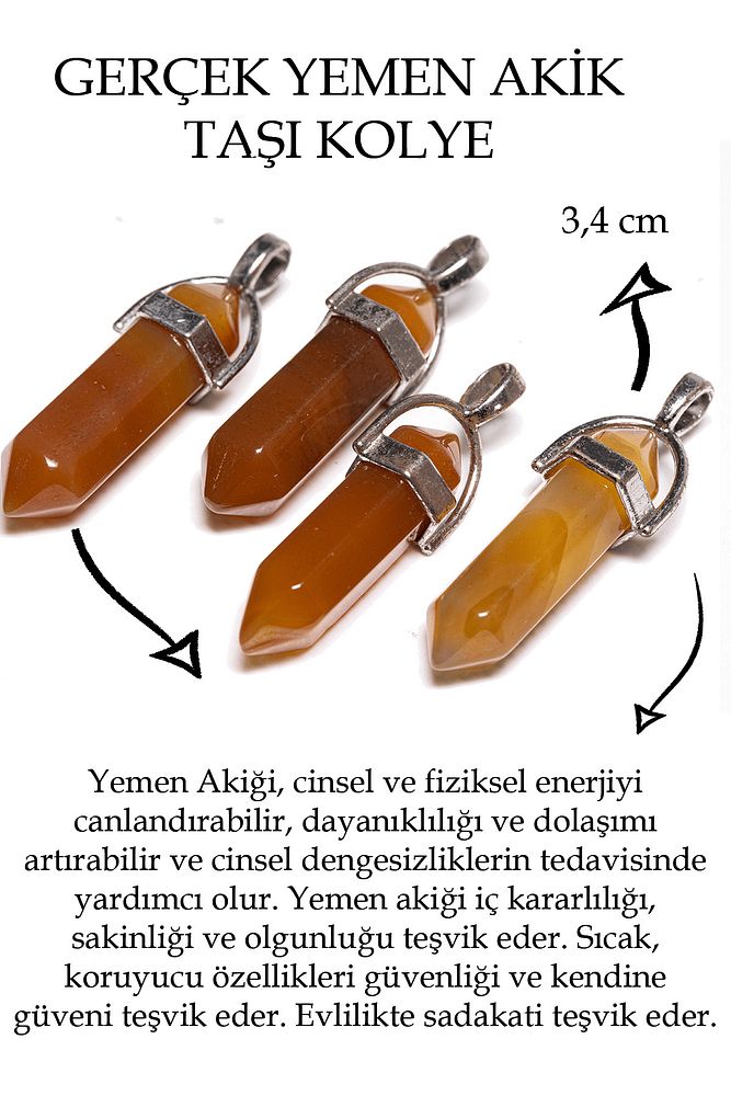 Bu doğal taş kolye tasarımımızda; Akik kullanılmıştır. Zincir ölçüsü 45 cm'dir. Her için uyumludur. Yetişkin ve çocuk için kullanılabilir. %100 Orijinal ve gerçek taştır. Sinirinizi stresinizi alacak, mineral açısından oldukça zengin olduğu için bulunduğu için teniniz ile temas eder etmez aradaki farkı kısa bir süre içinde hissedeceksiniz.