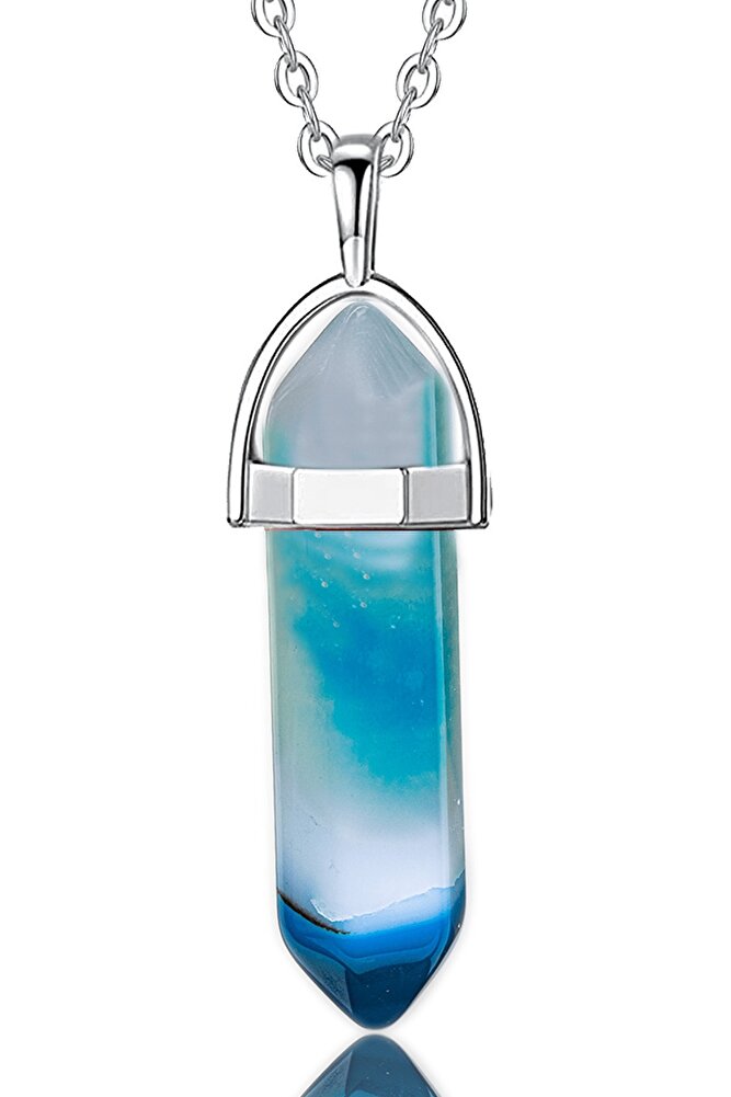 Sertifikalı Çivi Model Mavi Akik Taşı Kolye