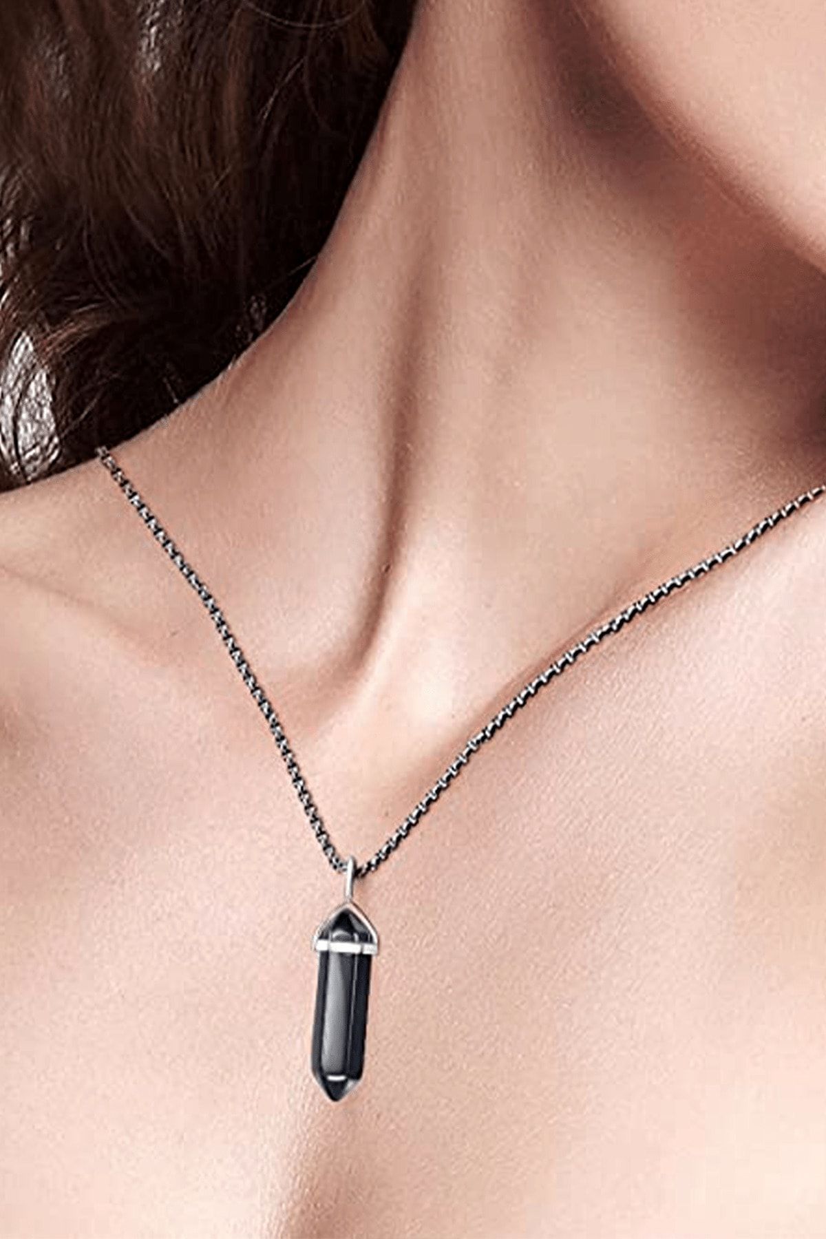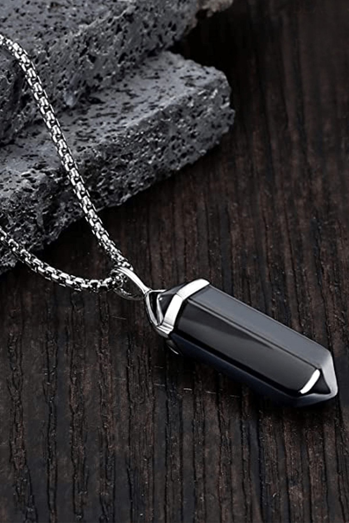 Sertifikalı Çivi Model Obsidyen Taşı Kolye Doğal Siyah Renk