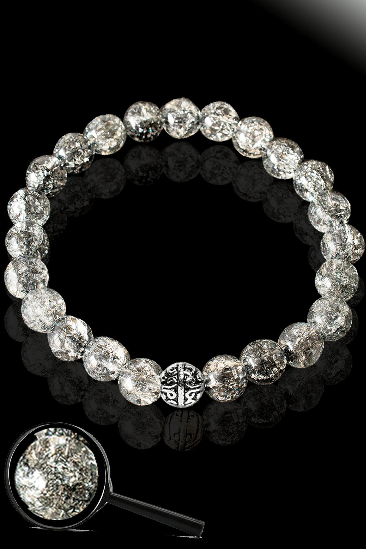 Sertifikalı Dağ Kristalı Gri Necef Taşı Bileklik - Gümüş Aparatlı