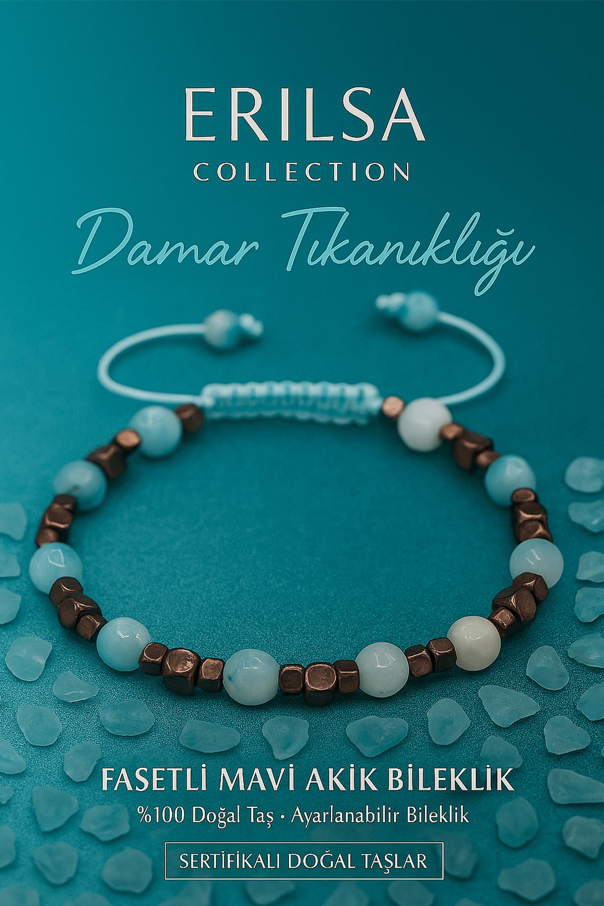 Fasetli Mavi Akik ve yüksek frekanslı Terahertz taşının birleşimiyle hazırlanan bu özel bileklik, damar sağlığını desteklemek, dolaşımı güçlendirmek ve kan akışını düzenlemek için tasarlanmış güçlü bir doğal taş kombinasyonudur.