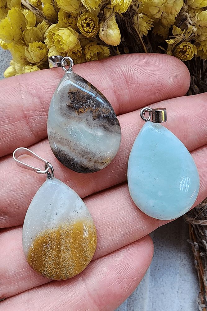Sertifikalı Damla Model Gerçek Amazonit Taşı Kolye