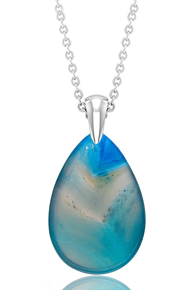 Sertifikalı Damla Model Mavi Akik Taşı Kolye (GÜMÜŞ APARATLI)