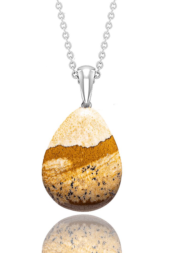 Sertifikalı Damla Model Toprak Jasper Taşı Kolye (GÜMÜŞ APARATLI)