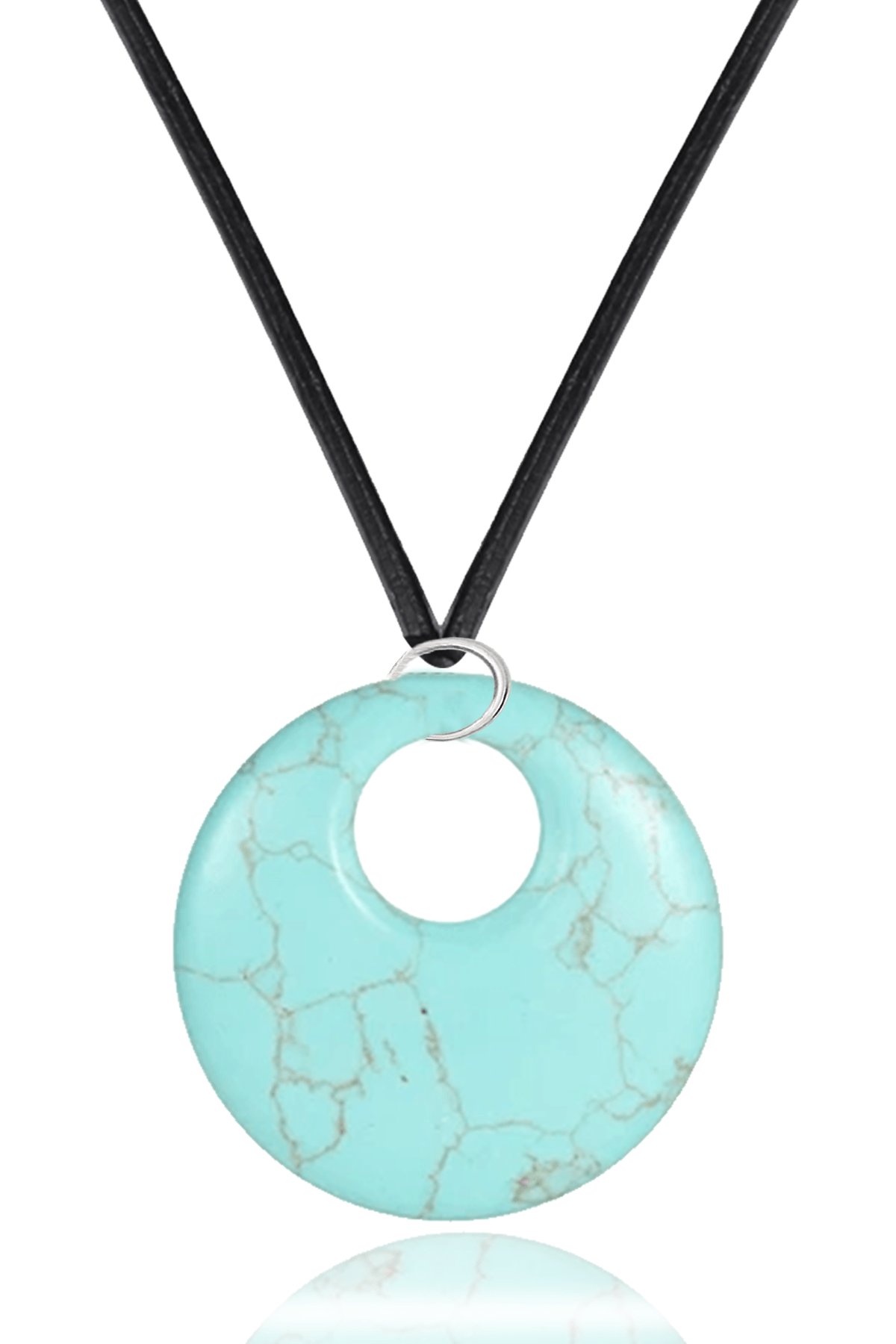 Sertifikalı Deri İpli Doğal Firuze (Turkuaz) Taşı Kolye