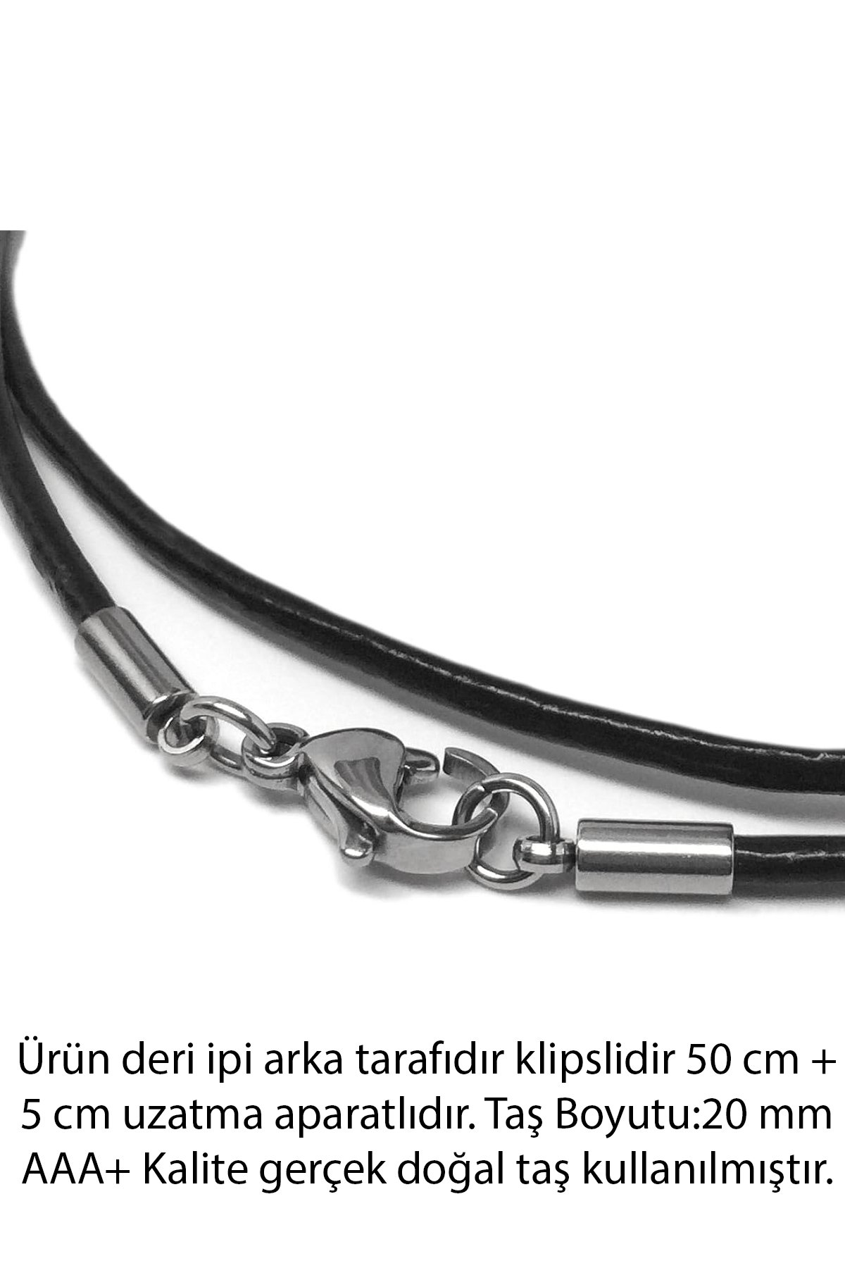 Sertifikalı Deri İpli Doğal Gül Kuvars Taşı Kolye