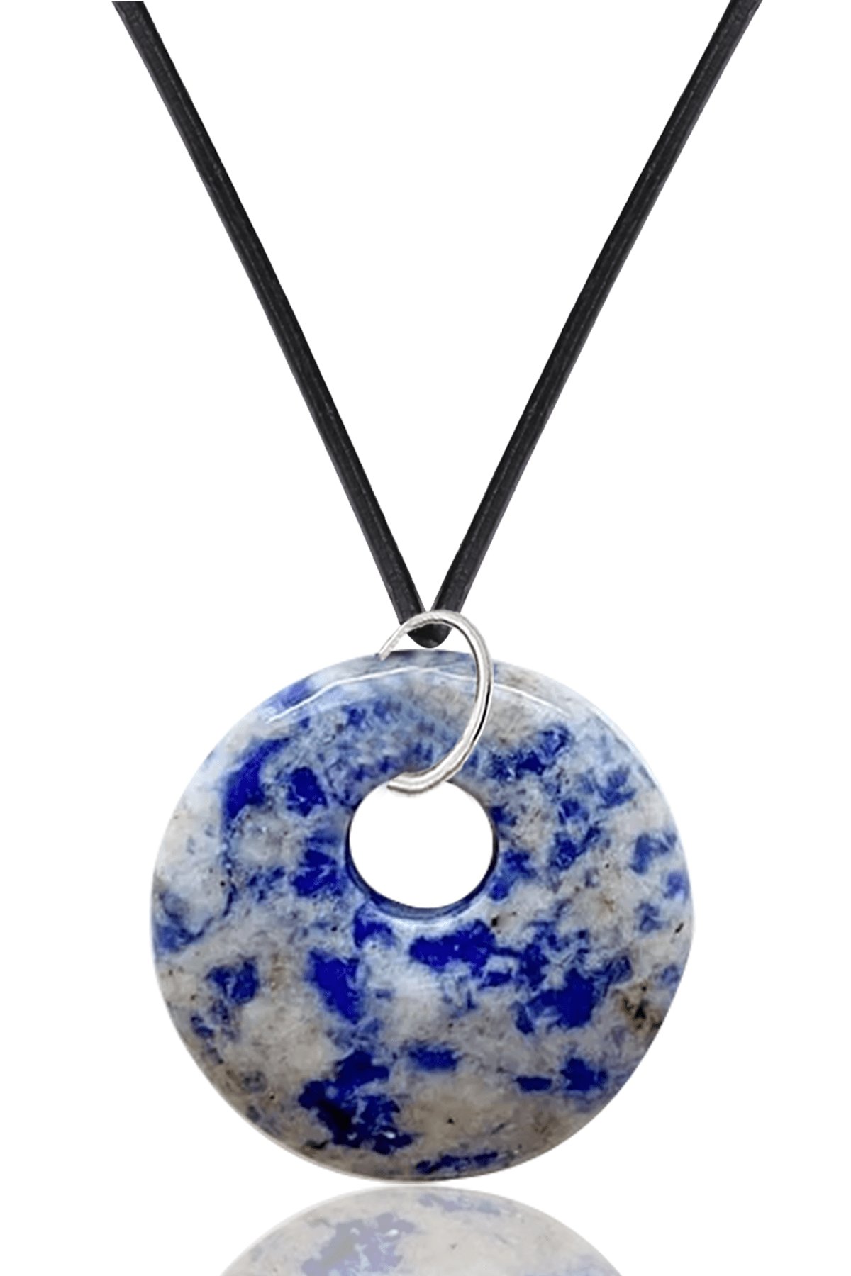 Sertifikalı Deri İpli Doğal Sodalit Taşı Kolye (Zeka Taşı)