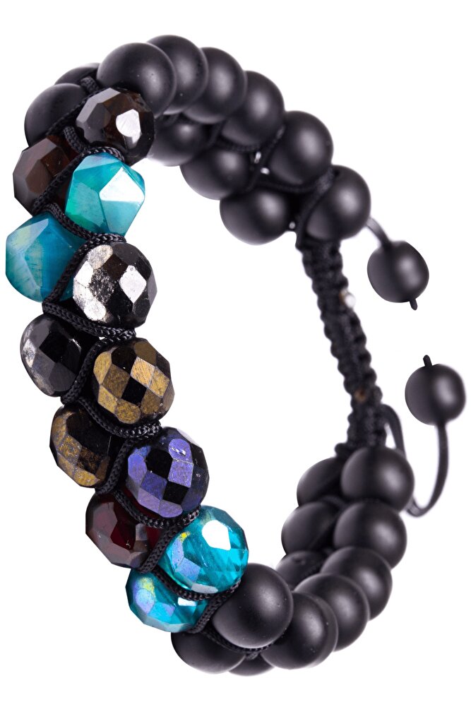 Sertifikalı Doğal Akik Hematit Kuvars Oniks Taşı 7 Çakra Bileklik