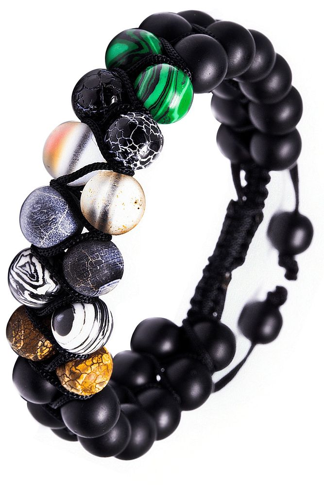 Ametist taşı sakinlik ve denge ile öne çıkarken, akuamarin ferahlık hissi verir. Labradorit ve jasper taşları güçlü bir görünüm sunarken, kuvars ve dumanlı kuvars zihinsel netlik ile ilişkilendirilir. Turkuaz taşı ise stilinize canlılık ve karakter katar. Bu özel kombinasyon, hem estetik hem de dikkat çekici bir aksesuar arayanlar için güçlü bir tercihtir.