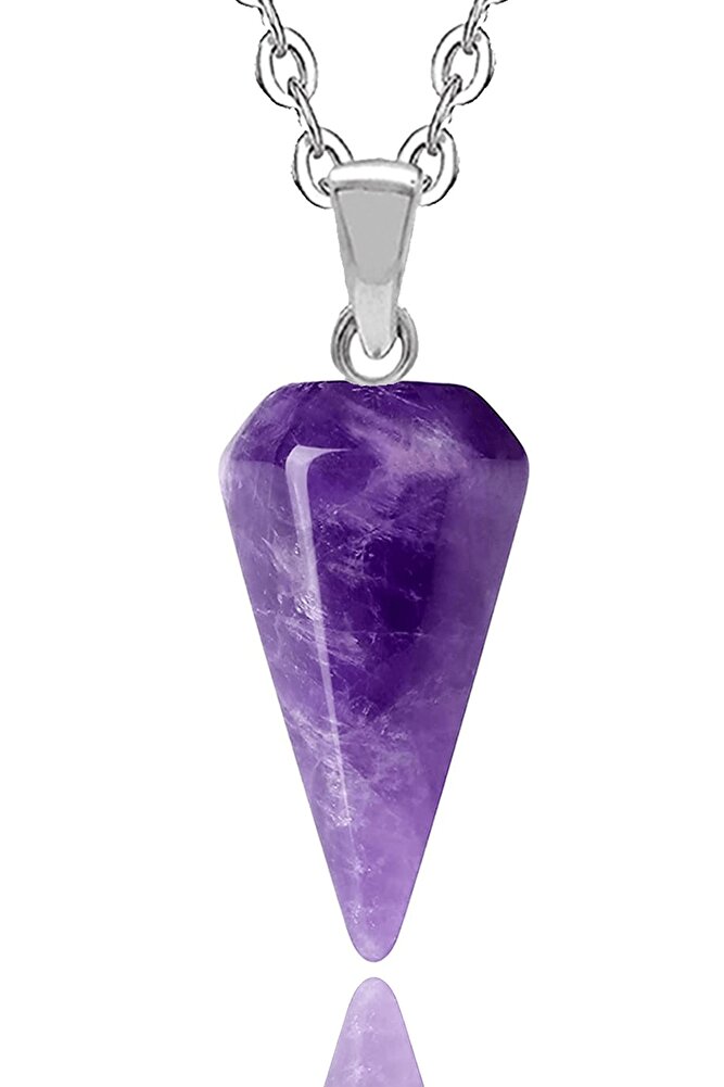 Doğal ametist doğal taş pandül kolye, modellerimizin taşlarını Dünya\'nın çeşitli ülkelerinden ithal etmekteyiz. Dünya\'nın en kaliteli taşlarını özel olarak tasarım ekibimiz tarafınca tasarlamaktayız. Taşın içerisindeki mineraller teniniz ile temas eder ve sizleri sakinleştirir. Sinirinizi stresinizi alır. Pozitif enerjiler verir ve negatif enerjilerinizi yok edecektir. Doğal Taşların hiç biri birbirinin aynısı olmadığı için küçükte olsa farklılıklar gösterebilir. Ürünlerimiz sizlere orijinallik sertifikası ve garanti belgesi ile gönderilmektedir. \'\'Tesbih Atölyesi\'\' koruyucu kadife kesesinde gönderilecektir.