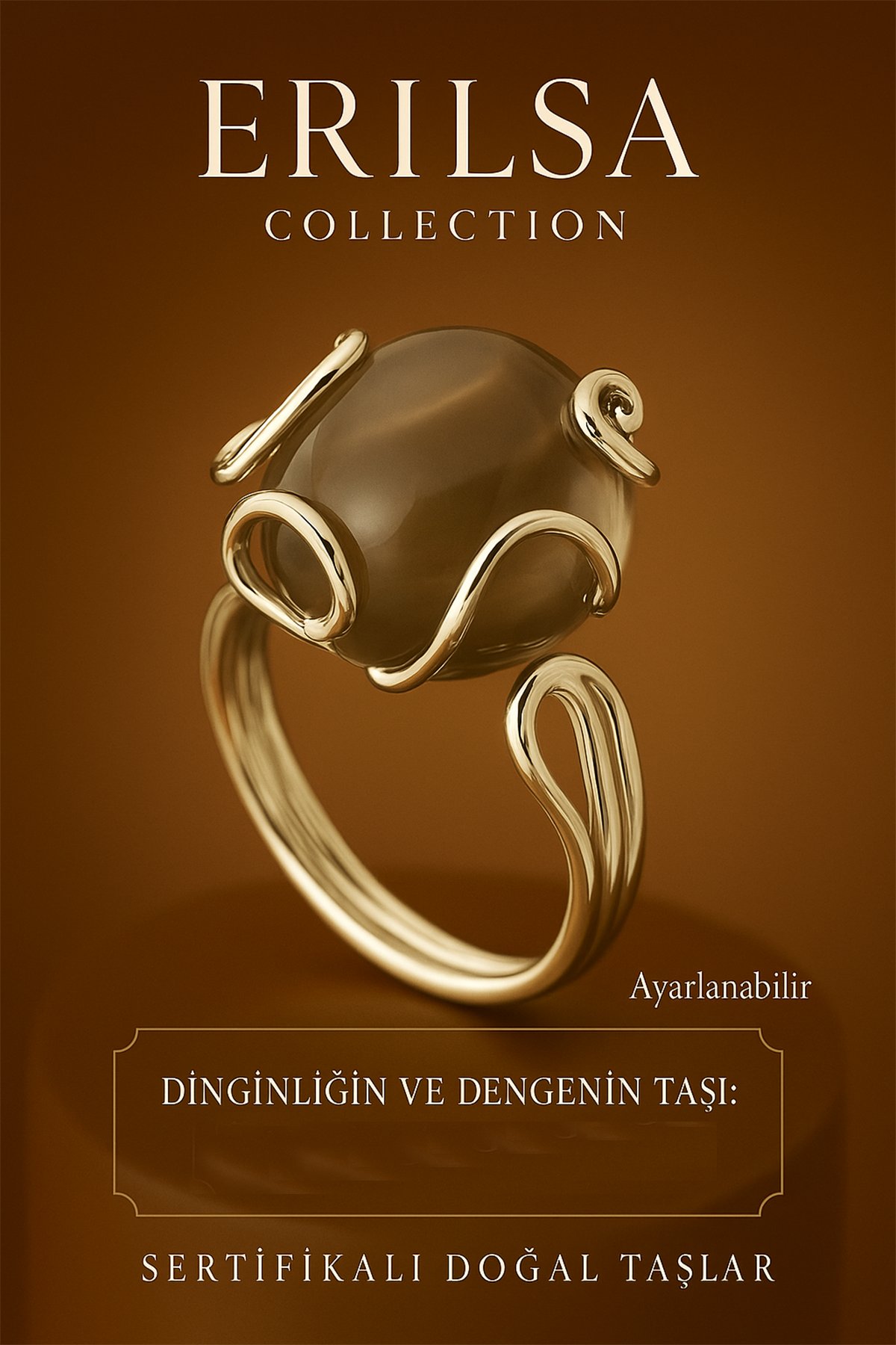 ERILSA Collection’ın özel tasarımı bu şık yüzük, denge ve dinginlik enerjisi ile bilinen Dumanlı Akik taşı ile hazırlanmıştır. %100 doğal ve sertifikalı taş, ayarlanabilir yüzük kasası sayesinde her parmağa uyum sağlar.