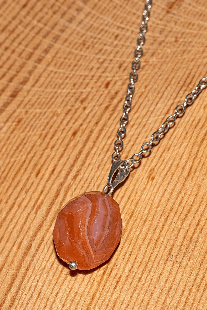 Sertifikalı Doğal Fasetli Turuncu Akik Taşı Kolye
