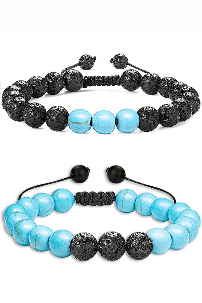 Sertifikalı Doğal Firuze Turkuaz Volkanik Lav Taşı Doğal Taş Bileklik Seti