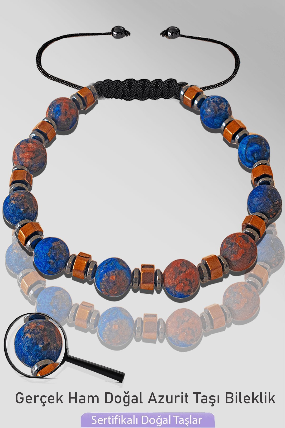 (Azurit Doğal Taş Bileklik – %100 Doğal ve Sertifikalı)