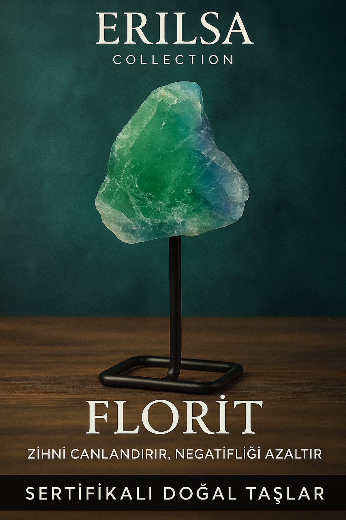Sertifikalı Doğal Ham Florit Taşı Standlı Dekoratif Obje – Zihinsel Netlik ve Enerji Dengeleyici