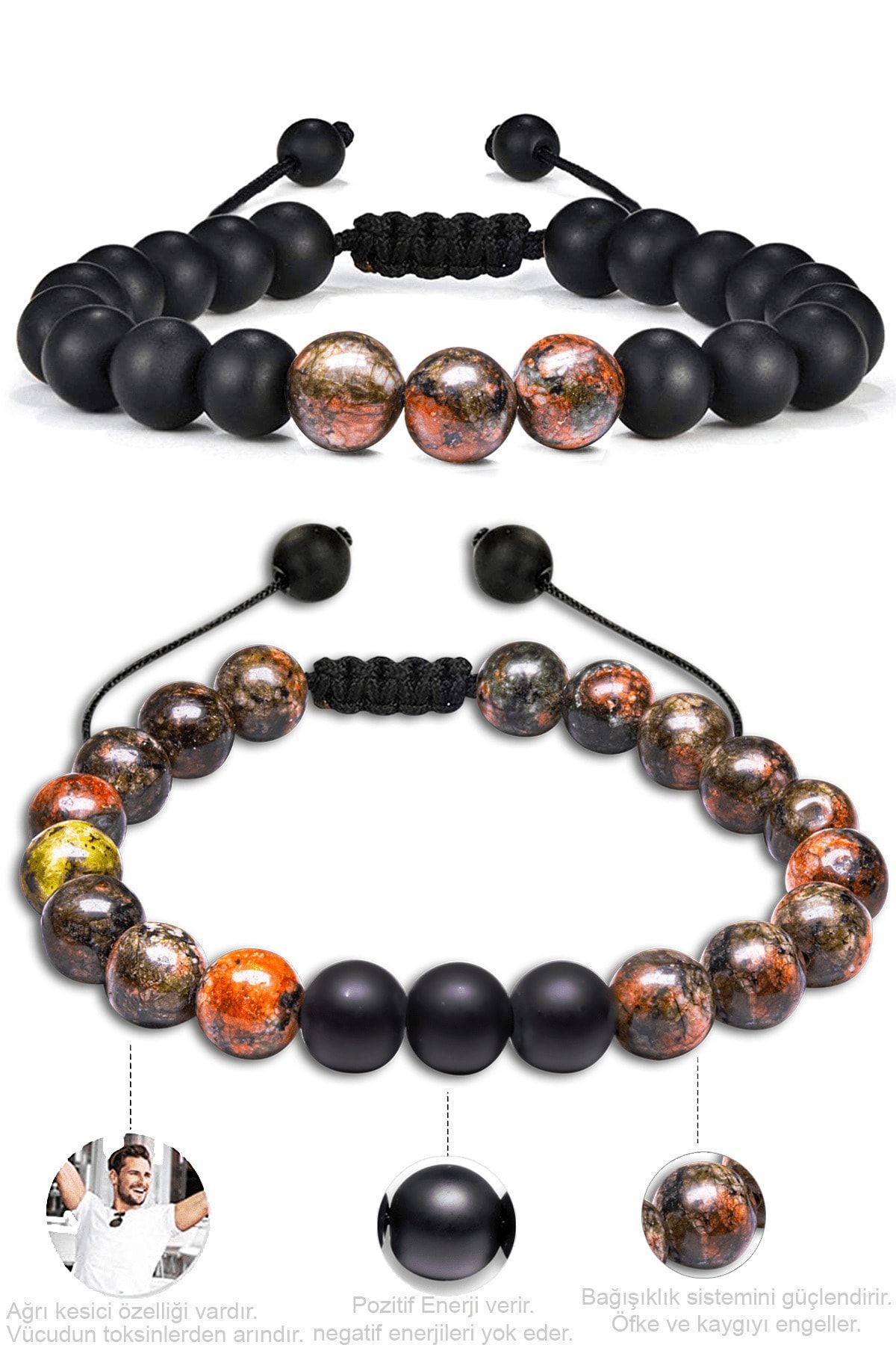 Sertifikalı Doğal Hint Akik Oniks Taşı Doğal Taş Bileklik Seti