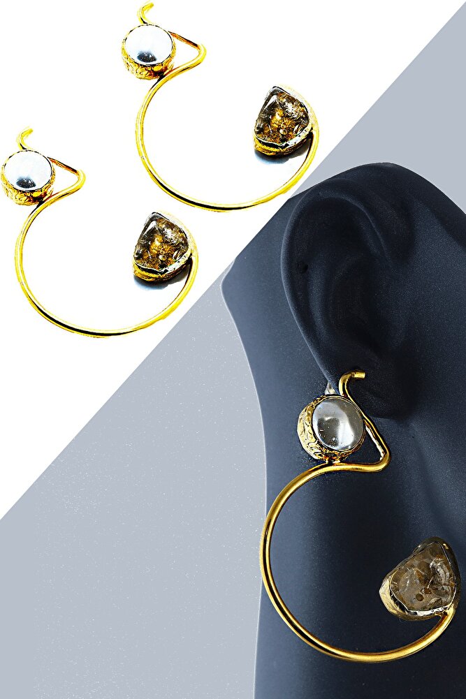Sertifikalı Doğal Inci Sitrin Taşlı Küpe