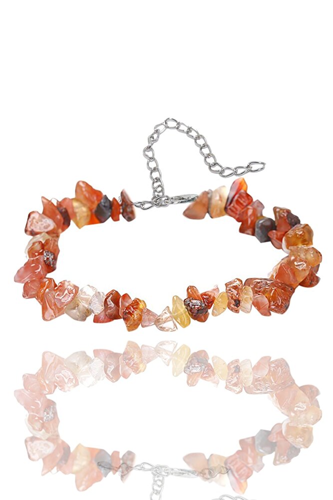 Sertifikalı Doğal Karnelyan Karneol Akik Kırık Taşlı Bileklik