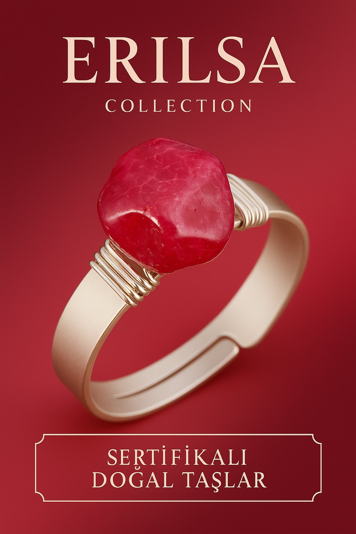 Erilsa Collection’un özel tasarımı bu yüzük, %100 doğal ve sertifikalı Kırmızı Akik taşı ile hazırlanmıştır. Ayarlanabilir tasarımı sayesinde her parmağa kolayca uyum sağlar.